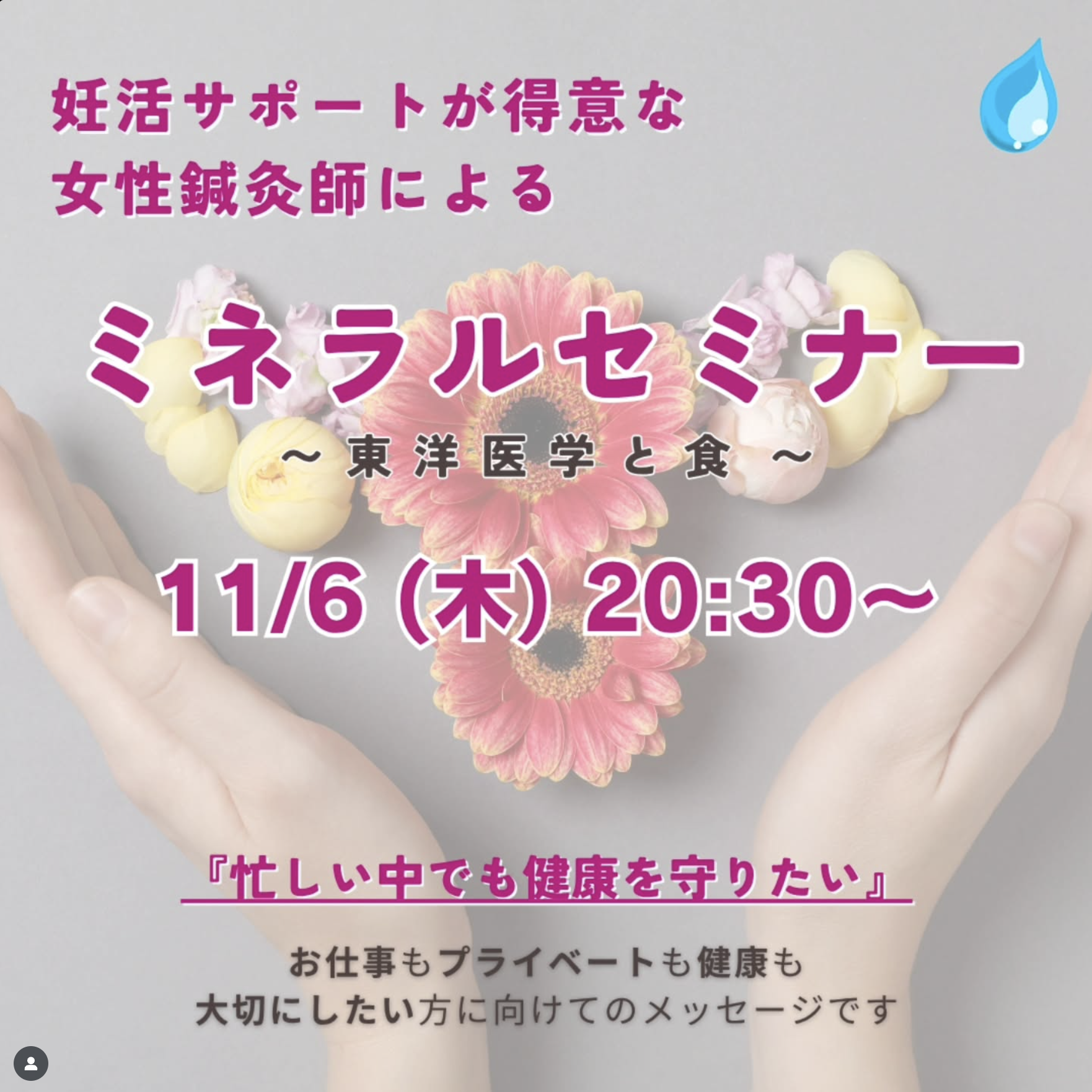 【妊活サポートが得意な鍼灸師によるミネラルセミナー】のご案内です![]()